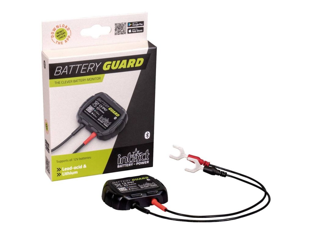 Díky intAct Battery Guard s bezplatnou aplikací pro Apple nebo Android jste nyní schopni snadno a rychle zkontrolovat stav nabití. Trvalý stav plného nabití zabraňuje možnému předčasnému poškození nebo selhání akumulátoru. Po připojení pomocí očka a stažení z aplikace pro Android nebo Apple zobrazíte aktuální hodnotu napětí. Vysílač je vhodný pro 6V, 12V a 24V baterie. Dosah je přibližně 6 metrů. Čtyřbarevný displej podobný tachometru ukazuje stav nabití v tmavě zelené (plně nabito), světle zelené (částečně nabito), oranžové (vybito) a červené barvě (úplně vybito). Hodnota napětí se zobrazuje taky pomocí číslic a písmen. Při nízké nebo minimální hodnotě bude doporučeno brzké dobití baterie.