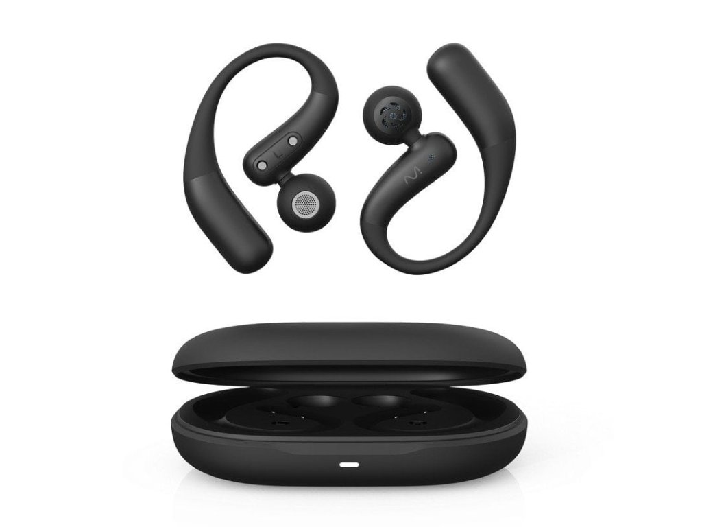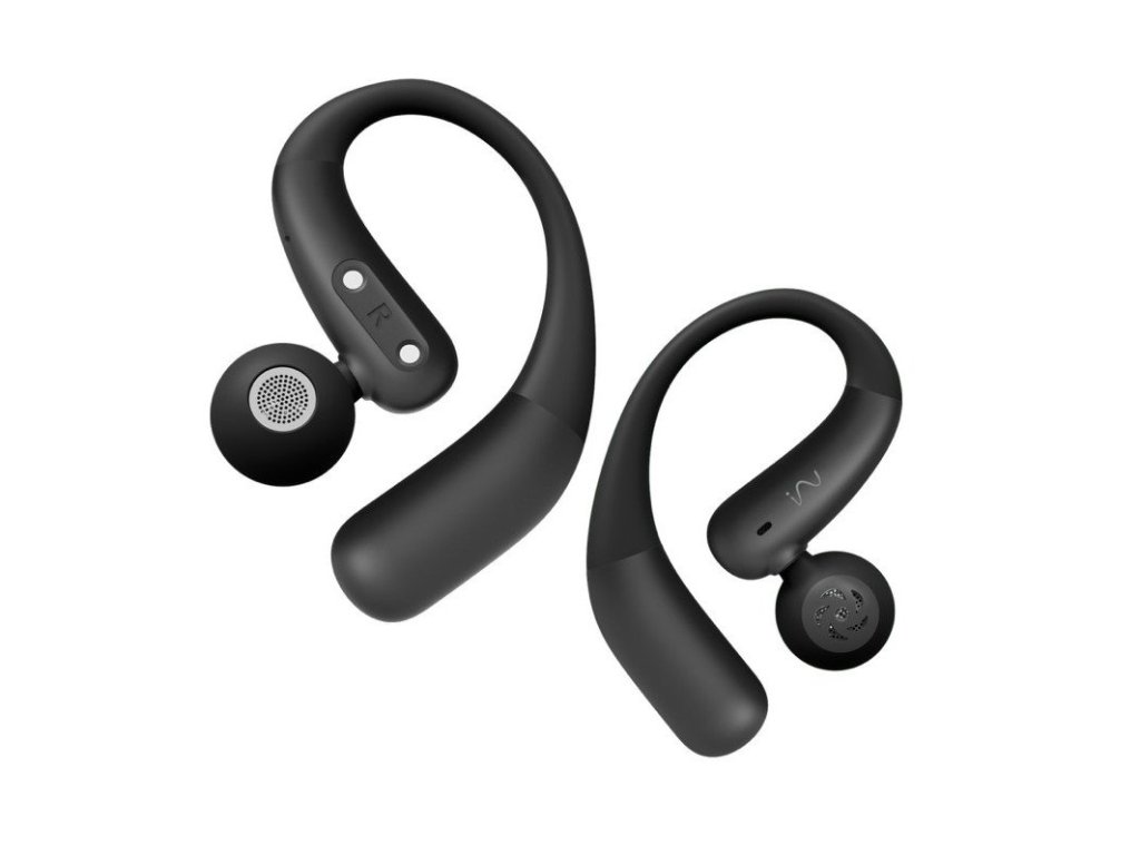 Sportovní bezdrátová sluchátka typu Open Ear, odolnost IPX6, lehké a ohebné tělo, výdrž až 21 h, mikrofon, černá