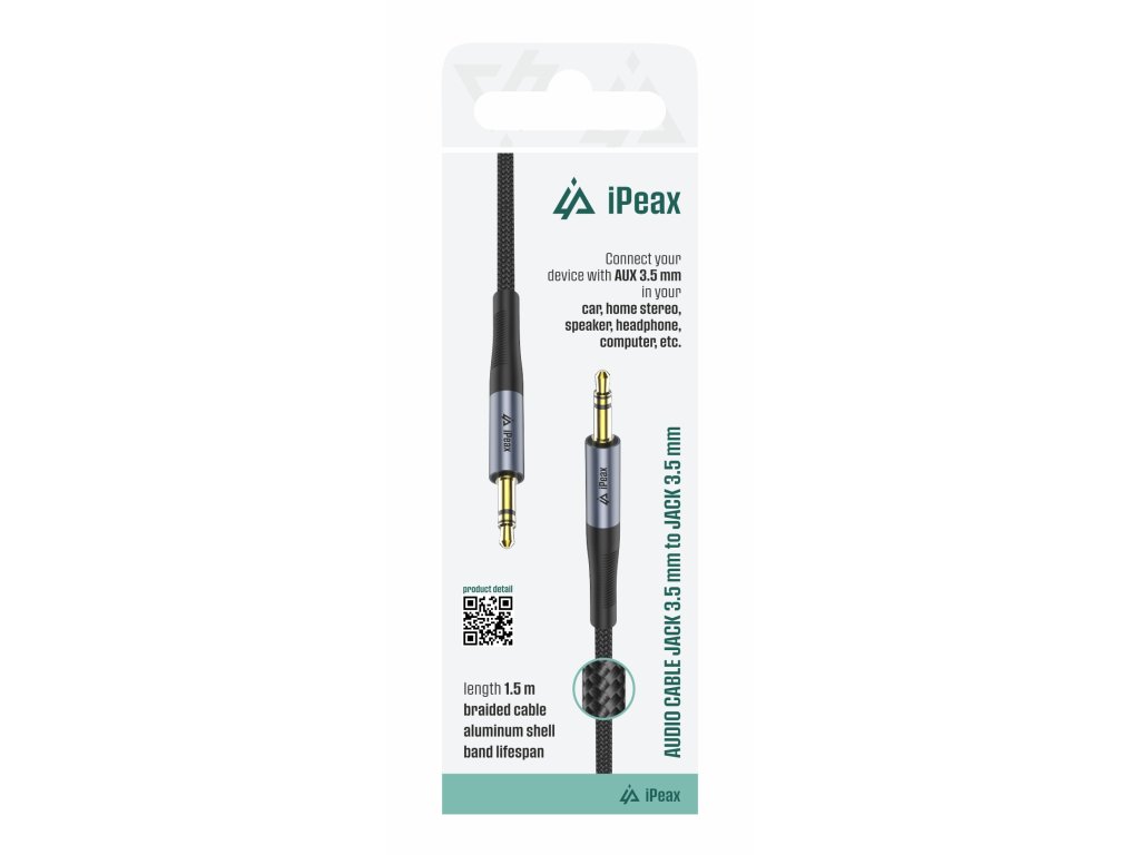 Audio kabel iPEAX 3,5 mm Jack / Jack (1,5 m) pro připojení sluchátek, reproduktorů nebo autorádií. Kvalitní stereo zvuk a odolné provedení pro každodenní použití.