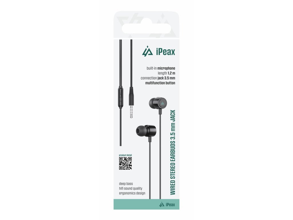 iPEAX drátová sluchátka s 3,5mm jackem a skvělým zvukem. Ovládání hudby a hovorů jedním tlačítkem. Ergonomický design, Hmotnost: 12,1 g. Ideální pro zařízení s 3,5mm audio portem.