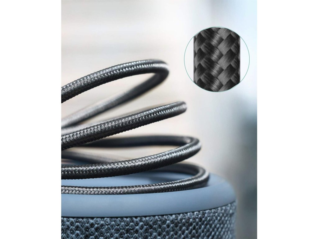 Odolný textilní povrch kabelu chrání proti opotřebení a zalomení, přičemž elegantní černé provedení působí moderně a decentně. Výborná volba do kanceláře, domácnosti i na cesty.