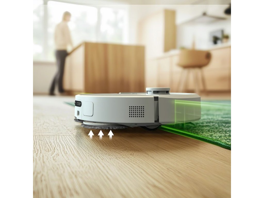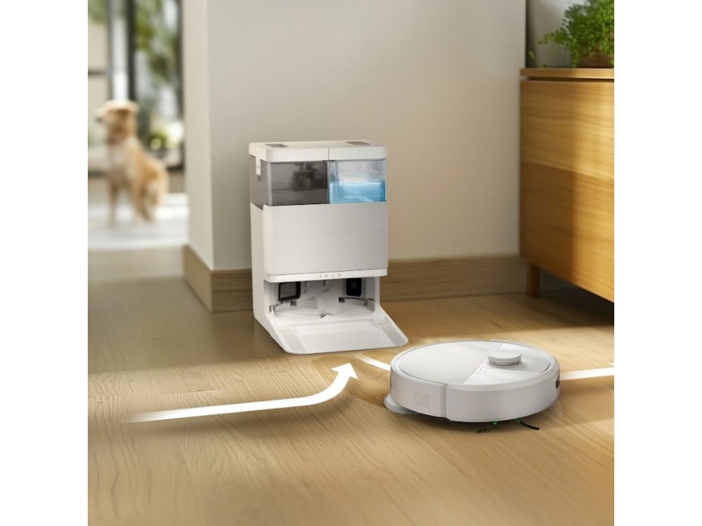 Kombinuje vysoce účinné vysávání, vytírání s důkladným drhnutím a inteligentní dokovací stanici, která sama vypere mopovací podložky i vyprázdní zásobník.