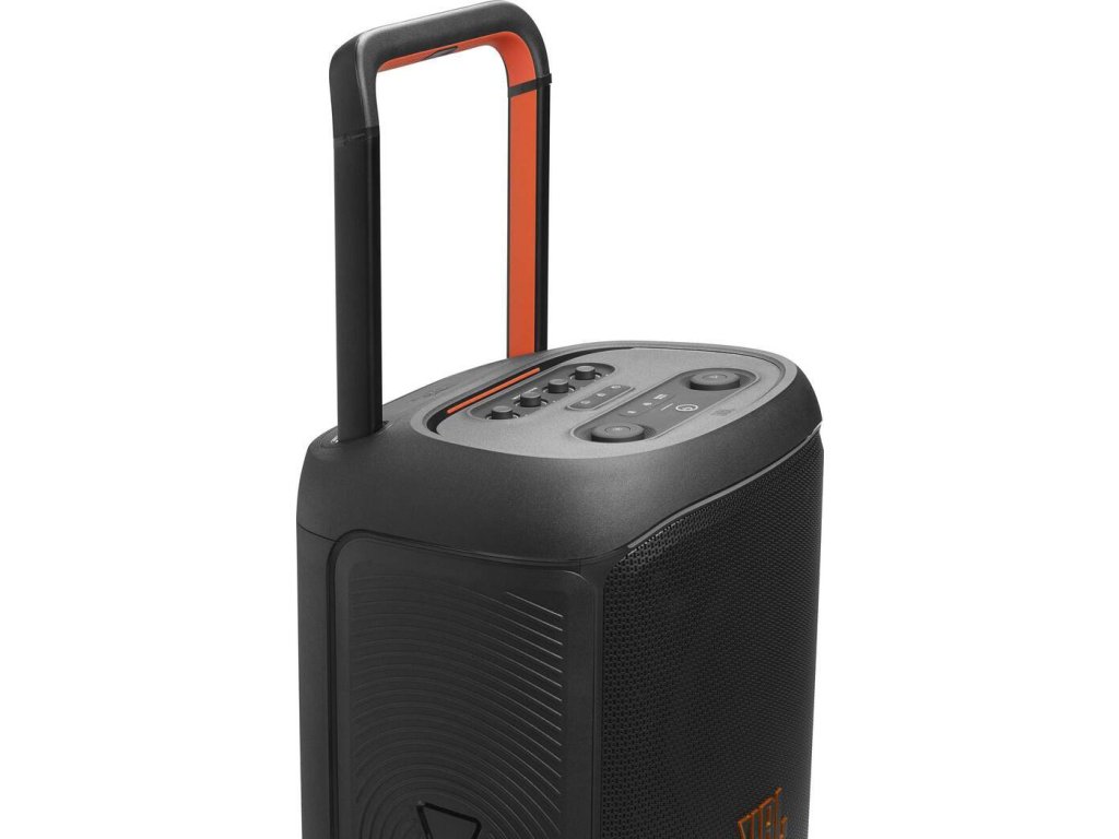 Ať už jedete kamkoli, JBL PartyBox 520 je připraven na akci díky teleskopickému madlu a robustním kolečkám pro plynulý pohyb.