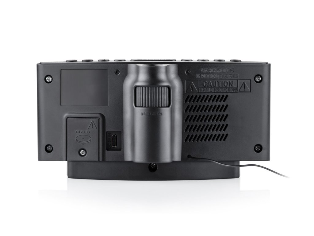 Radiobudík s projekcí času, digitální FM tuner (10 předvoleb), nastavení jasu, dva časy buzení, Sleep, Snooze, napájení USB-C (adaptér není součástí)