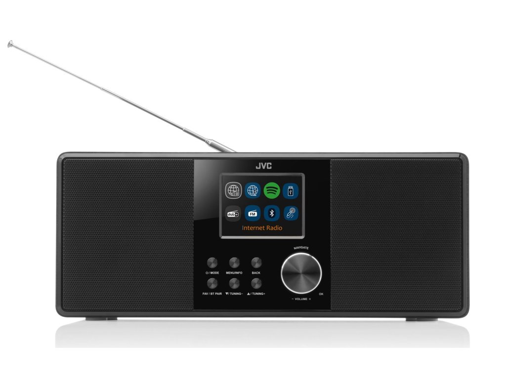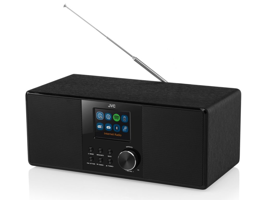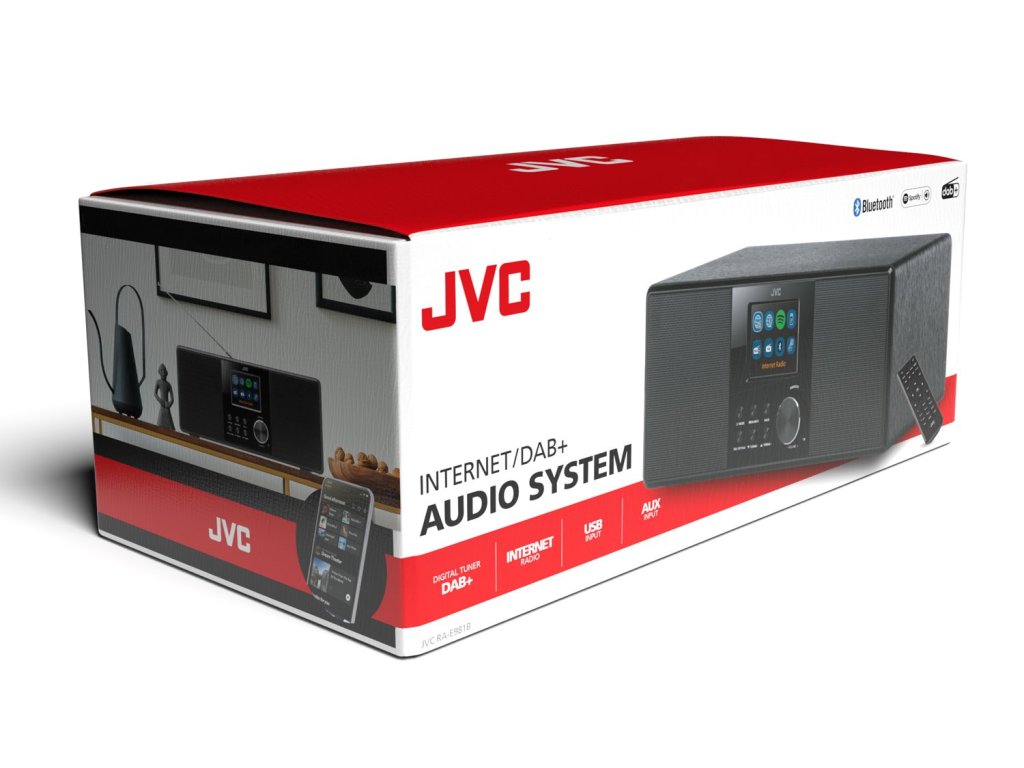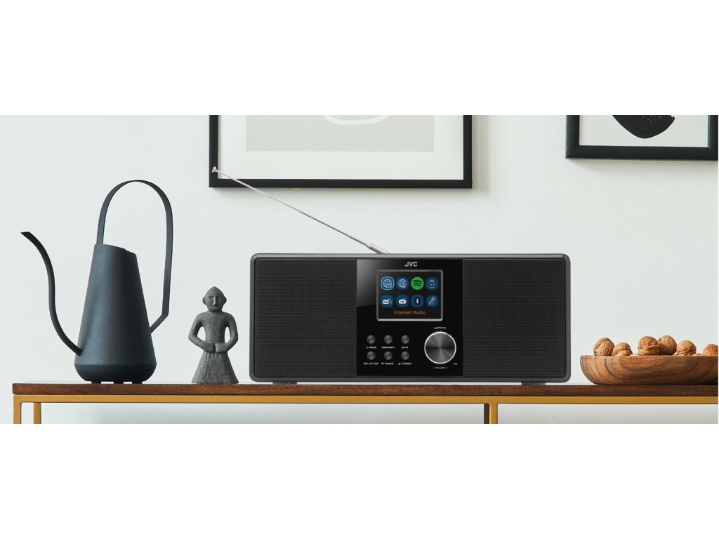 Moderní doba výrazně rozšířila nabídku audio obsahu. Proto rádio JVC RA-E981B nabízí široký výběr jeho příjmu. Naladit lze rozhlasové stanice v moderním DAB+, ale i klasickém FM, pásmu. V obou případech umožňuje přístroj naladit a uložit 40 předvoleb. Pokud se nespokojíte s lokální rozhlasovou nabídkou, oceníte možnost poslechu internetových rádií z téměř celého světa. I v tomto případě lze do paměti uložit až 40 předvoleb. Pro využití této funkce je potřeba přístroj připojit k internetové WiFi síti.