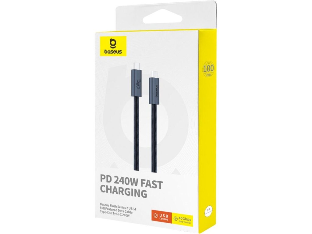 Kabel Baseus Flash, rychlonabíjecí kabel USB do USB-C, výkon 240W,nabíjí chytrý telefon, tablet, notebook nebo jiná zařízení,bleskový přenos dat rychlostí 40 GB/s, odolná konstrukce - hliník pokryt nylonovým opletením,inteligentní čip E-marker