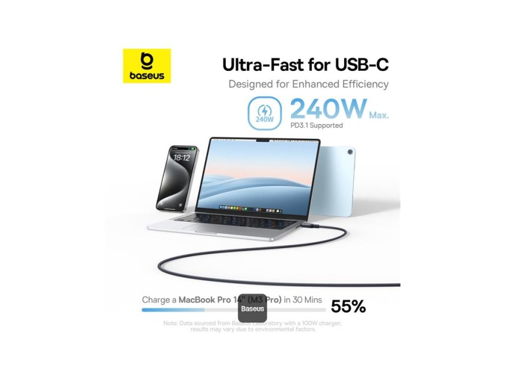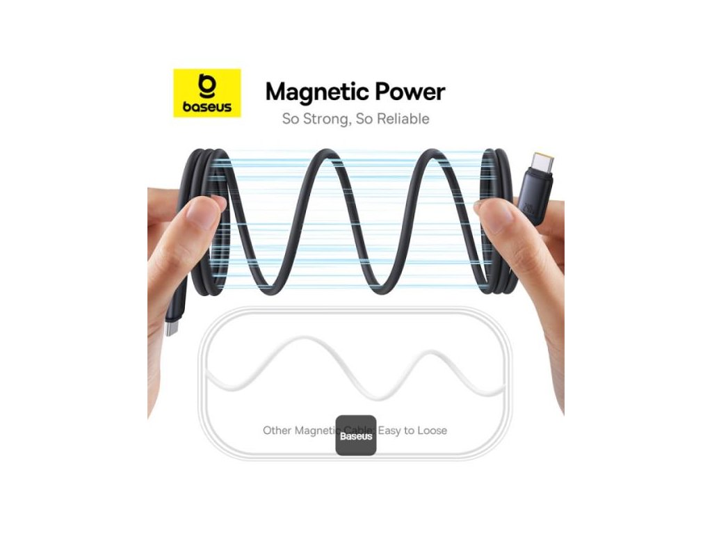 Rozlučte se se zamotanými kabely a pomalým nabíjením. Magnetický samonavíjecí kabel USB-C Baseus PicoGo kombinuje vysokorychlostní 240W nabíjení s elegantním magnetickým samonavíjecím designem a poskytuje maximální pohodlí a efektivitu. Tento odolný kabel je vyroben z prvotřídního tekutého silikonu, je pružný a odolný a vydrží více než 10 000 ohnutí. Tento všestranný kabel je ideální pro nabíjení široké škály zařízení - od iPhonu a MacBooku až po Samsung Galaxy a Google Pixel - a podporuje také přenos dat rychlostí 480 Mb/s, takže můžete synchronizovat a nabíjet současně.