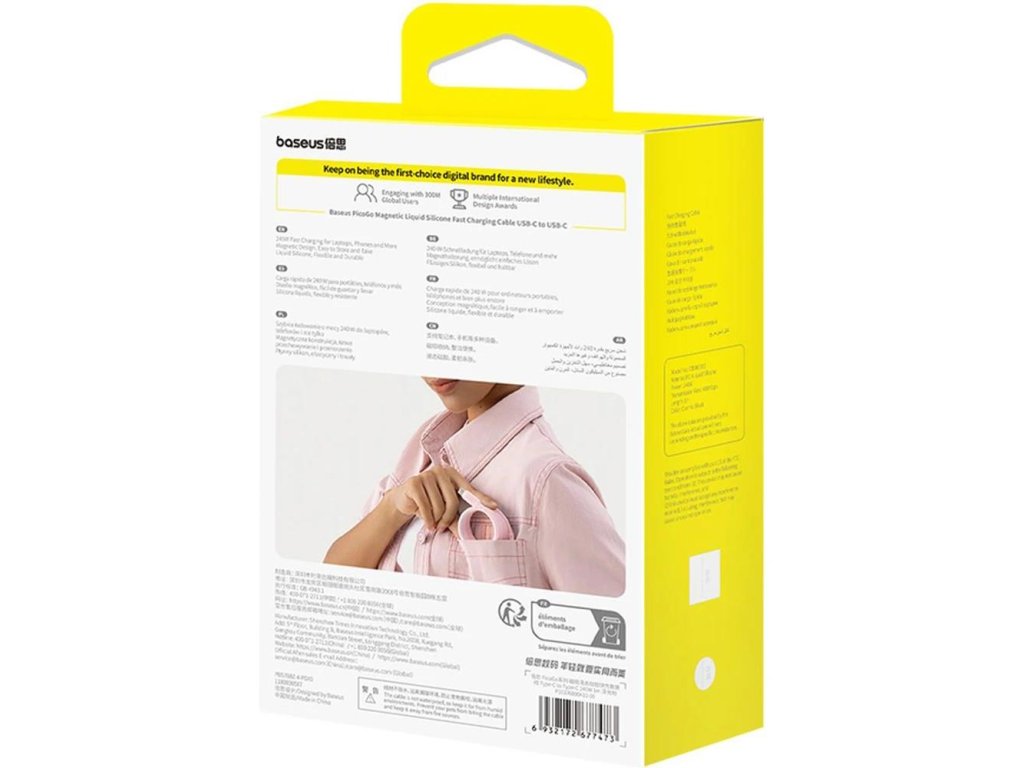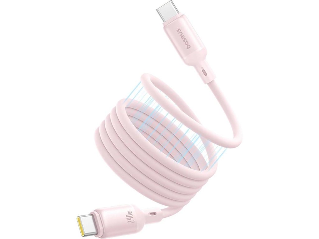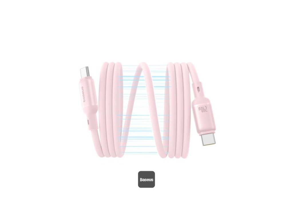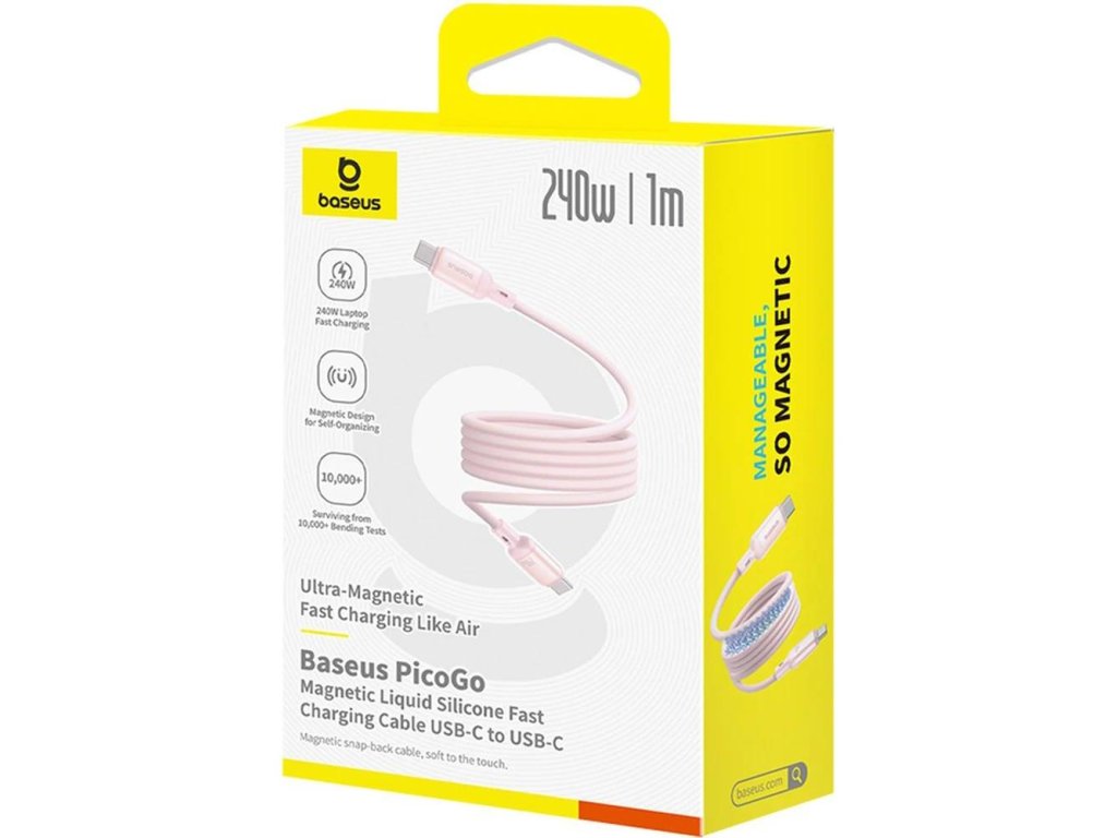 Kabel Baseus PicoGo, USB-C/USB-C, délka 1m,magnetický samonavíjecí kabel, vysokorychlostní nabíjecí kabel, výkon 240W,přenos dat 480 Mb/s,měkký materiál z tekutého silikonu - odolný, pružný a měkký, barva růžová
