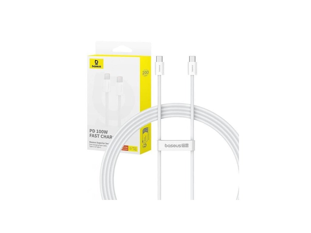 Kabel Baseus Superior 2, podporuje rychlé nabíjení PD 100W,konektory USB-C/USB-C, délka 2m, přenosová rychlost 480 Mbps, barva bílá