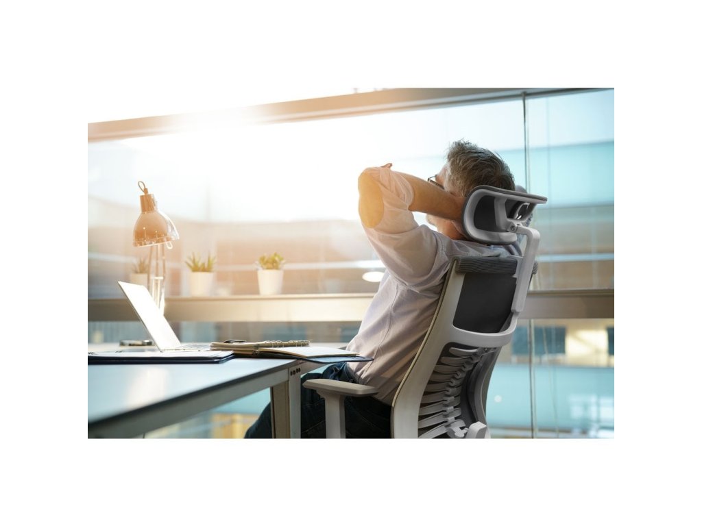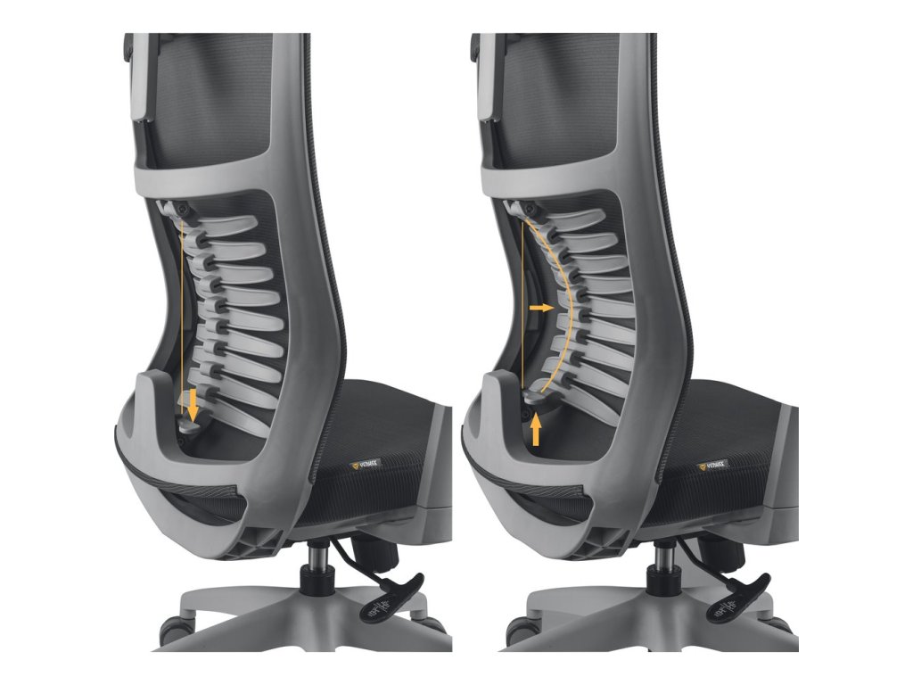 Kancelářská židle FISHBONE svou konstrukcí, výběrem materiálů a designem podporuje správné sezení, nabízí absolutní komfort a vizuálně zpříjemňuje vaše pracovní, studijní nebo herní prostředí. Židle je vybavena mechanismem, který zajišťuje synchronní naklápění opěradla a sedáku. Tato funkce umožnuje nejen nastavení opěradla do optimálního úhlu, ale také naklápění sedáku při houpání, čímž neustálé udržuje správný úhel mezi opěradlem a sedákem. Aretace náklonu a nastavení výšky sedu se ovládají páčkou na pravé straně sedáku, pod kterým je zároveň umístěna i otočná regulace tuhosti houpání. Samotnou kapitolou je FISHBONE konstrukce bederní opěry, kterou tvoří devět dvoukřídlých zádových podpěrek. Nastavitelná opěra nabízí čtyři úrovně přítlaku na bederní část a poskytuje tak komplexní oporu páteře a zádového svalstva. Bederní opěra je potažena síťovinou, čímž se zvyšuje vzdušnost a brání přehřívání a pocení dotykových partií těla. Ramenní část opěry je rovná a zajišťuje dostatek místa a komfortu. Robustní sedák je vyplněný studenou pěnou a je potažen kvalitním čalouněním, které je příjemné na dotyk a snadno udržovatelné. Rozměry a tvar sedáku zaručují správné podepření dolních končetin a stejně jako i bederní opěrka, zaručuje dostatek místa a komfortu bez ohledu na tělesné proporce uživatele. Anatomicky tvarovaná a výškově a úhlově nastavitelná hlavová opěrka zaručuje absolutní komfort pro uživatele s různou výškou postavy. Opěrka je potažena síťovinou pro lepší vzdušnost a podepření v oblasti krční páteře. Loketní opěrky jsou měkčené a nastavitelné. Lze nastavit jejich výšku, úhel a hloubku a dosáhnout tak optimální polohy předloktí a ramen pro pohodlné sezení bez ohledu na výšku uživatele anebo pracovní plochy. Odolný nylonový kříž v kombinaci s univerzálními kolečky vhodnými pro všechny druhy povrchů zaručují vysokou mobilitu, spolehlivost a dlouhou životnost. Židle je certifikovaná na nosnost do 120 kg a je vhodná pro uživatele výšky 150 až 200 cm.