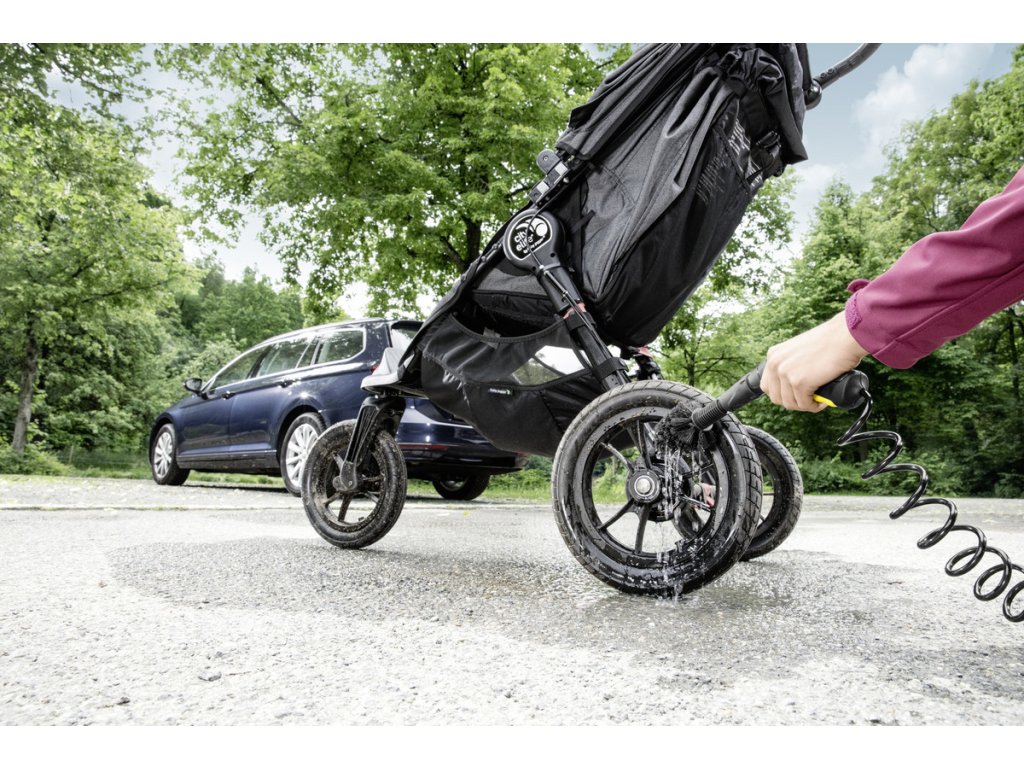 Dokonalé, pokud jste hodně na cestách: Box Adventure s optimálně zvoleným příslušenstvím pro čištění outdoorového vybavení kdekoli. Univerzální kartáč připojitelný na pistoli uvolní i silně ulpívající nečistoty měkkými štětinami a odplaví je pryč.