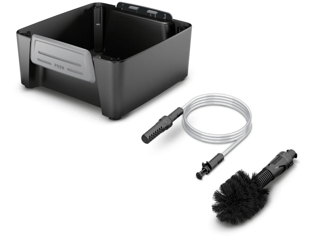 Díky sací hadici využijete i alternativní vodní zdroje jako studny nebo kanystry. V neposlední řadě lze příslušenství uschovat i v praktickém boxu, který bez problémů připevníte na tlakový čistič.