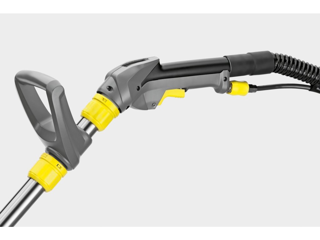 hodí také pro použití ve stísněných prostorových podmínkách. Flexibilní sací stěrka umí bezproblémově vyčistit i silně zastavěné oblasti. Přístroj pro nástřikovou extrakci je vybaven vestavěným kabelem