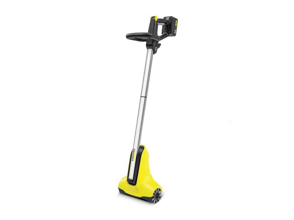AKU čistič teras včetně baterie 18 V a rychlonabíječky zanechá vaše terasy zářivě lesklé. Čištění je rychlé a snadné díky dvěma rotujícím kartáčům a integrovanému systému rozvodu vody.