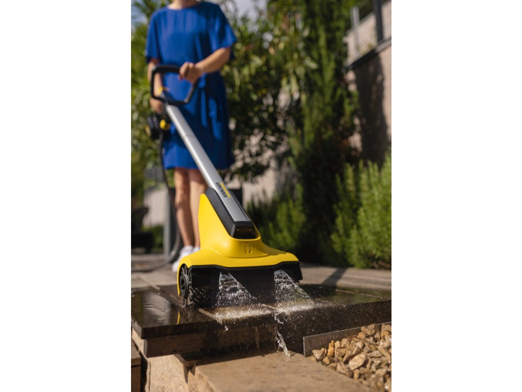 Čištění a splachování v jednom: Dva rotační válcové kartáče uvolňují nečistoty, které integrovaný systém rozvodu vody okamžitě smývá. Ideální na mech a šedý film.