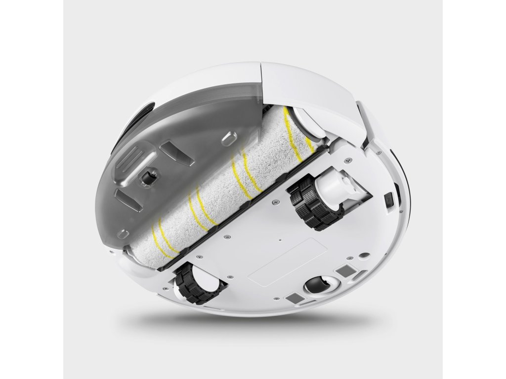 Robotická podlahová myčka RCF 3 pracuje s osvědčenou technologií válců Kärcher, která zajišťuje obzvláště důkladné mokré čištění tvrdých podlah. Lehké suché nečistoty, např. prach a drobky se sbírají přímo při mokrém vytírání a shromažďují se spolu s použitou