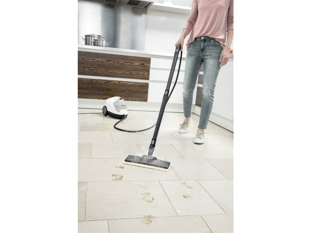 Pohodlné a nepřerušované čištění párou: S parním čističem SC 4 EasyFix s podlahovou hubicí EasyFix a trvale doplňovatelnou vyjímatelnou nádržkou na vodu.