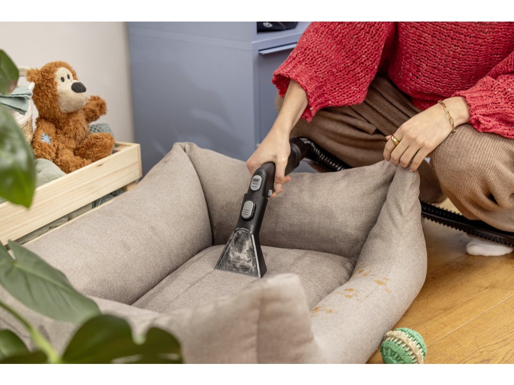 - Ergonomická podlahová hubice s rozprašovačem pro velké kobercové plochy přináší větší pohodlí.