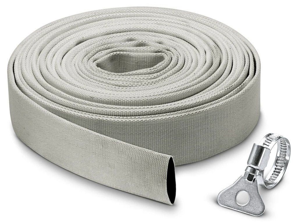 Textilní hadice se skládá z flexibilní 1 1/4" ploché hadice a hadicové spony z ušlechtilé oceli (30–40 mm) s křídlovým šroubem pro připojení bez nářadí. Sada textilních hadic Kärcher je zvlášť vhodná pro používání s ponornými čerpadly na čistou a špinavou vodu.