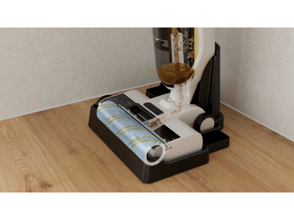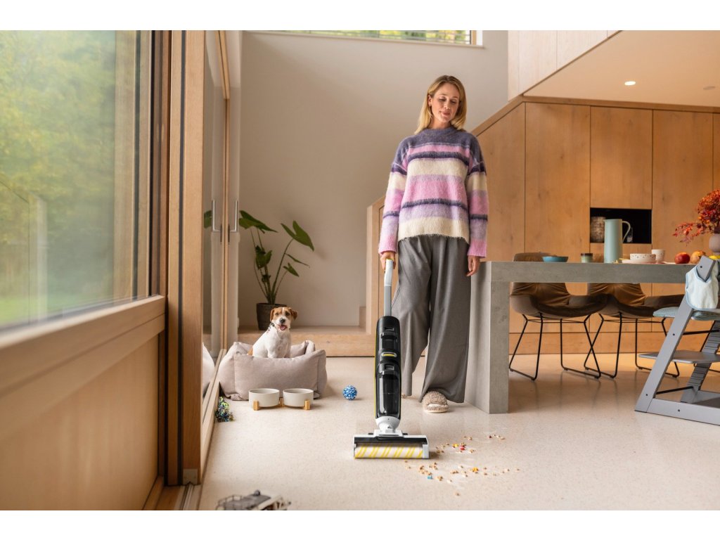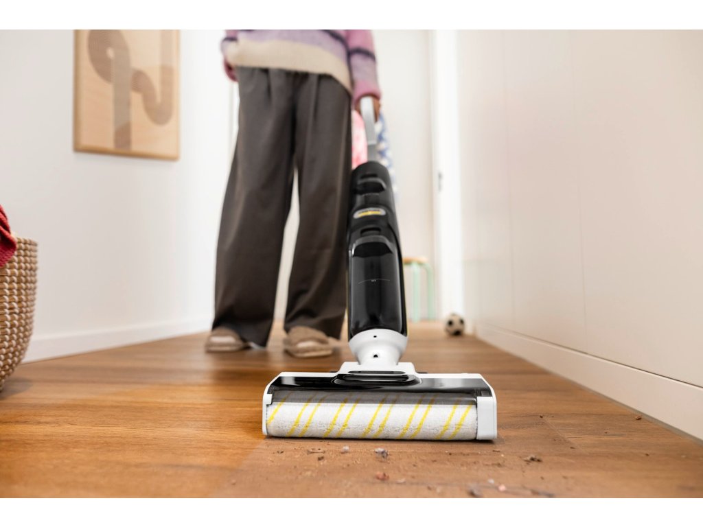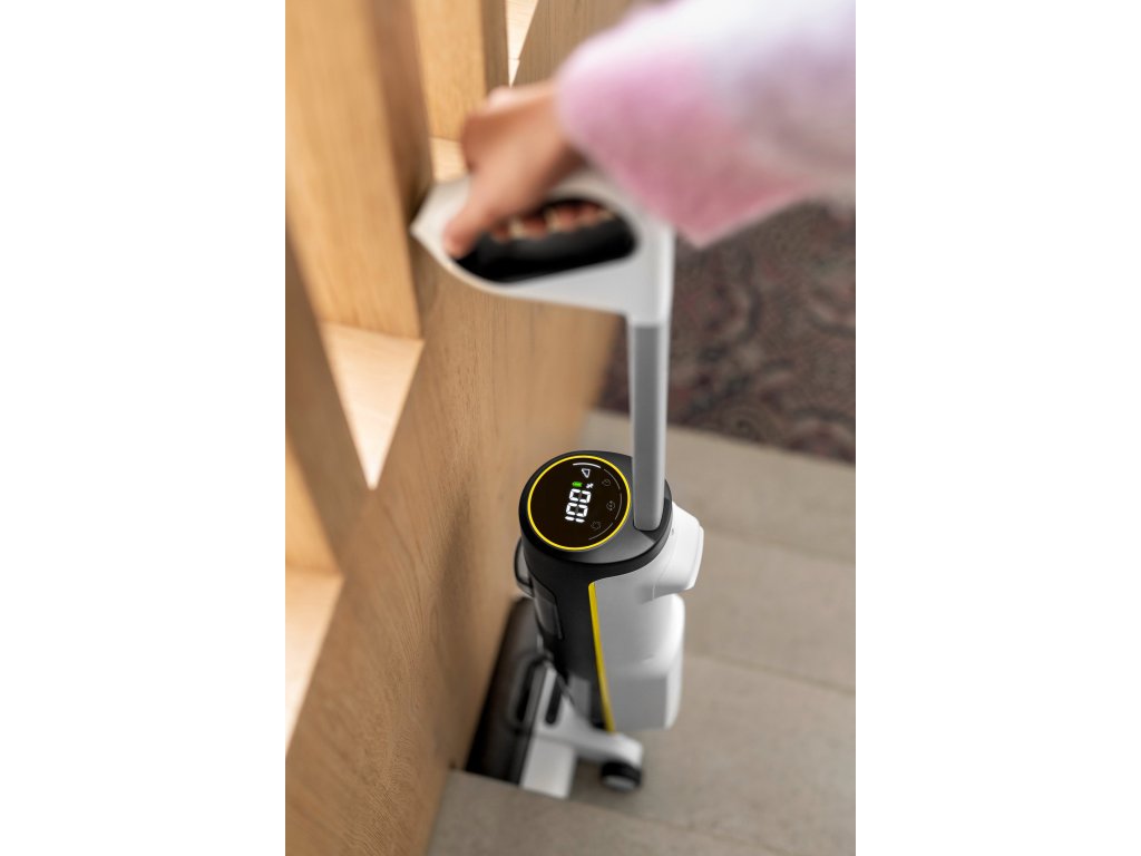 Aku tyčový vysavač s mopem FCV 4 je všestranný 3v1 přístroj, který vysává, vytírá a zanechává suchý povrch – úklid tvrdých podlah, koberců i rozlitých tekutin zvládnete až o polovinu rychleji. Vyberte si ze čtyř režimů: automatický Dynamic!Control s detekcí nečistot, chytrý Stair!Assist pro schody, suchý režim nebo výkonný Advanced!Power. Odstraní prach, chlupy domácích mazlíčků i odolné skvrny. Technologie Hygienic!Spin s až 500 ot./min zajišťuje perfektní vytírání a eliminuje až 99 % bakterií. Tichý, výkonný motor BLDC a baterie s výdrží 45 minut umožňují uklidit až 200 m2 na jedno nabití. Přístroj má 3,2“ displej Vision!Clean, automatický start/zastavení, samočištění a omyvatelný váleček Pure!Roll – úklid bez kontaktu s nečistotami je pohodlný a hygienický.