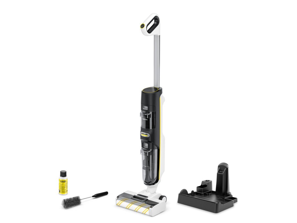 Aku tyčový vysavač s mopem Kärcher FCV 4 3v1 vysává, vytírá a suší podlahy. Až 45 min provozu, 4 režimy, Hygienic!Spin a účinnost proti bakteriím 99 %.