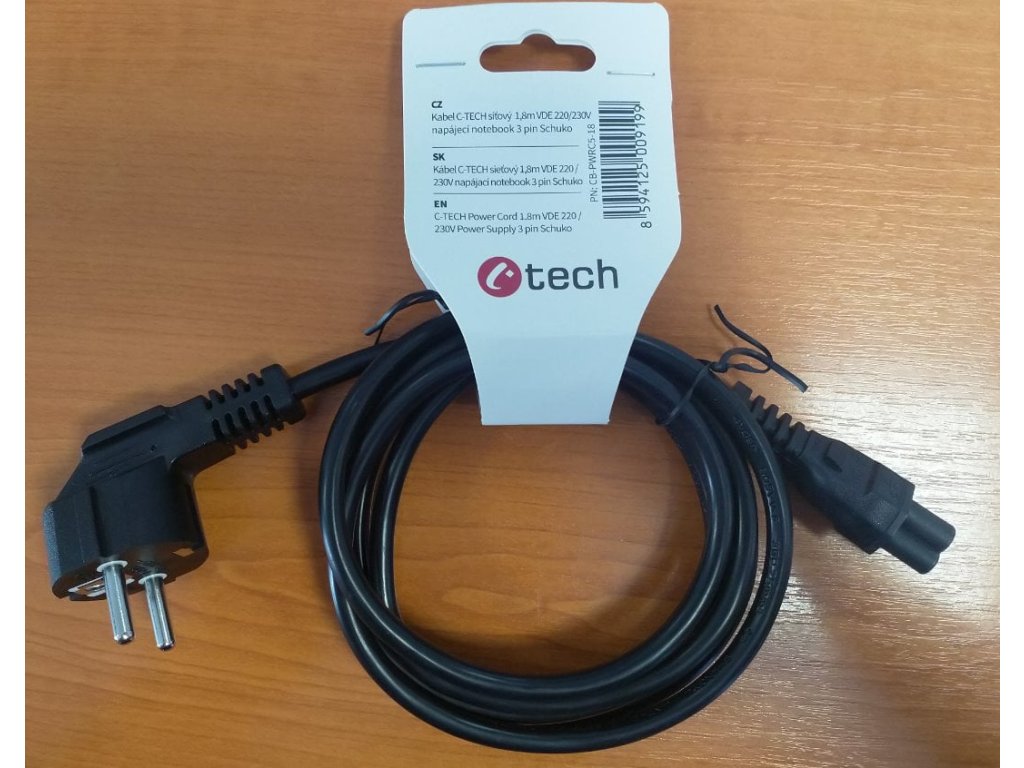 kabel napájecí síťový pro adaptér k notebooku, třípinový (trojlístek) délka 1,8m