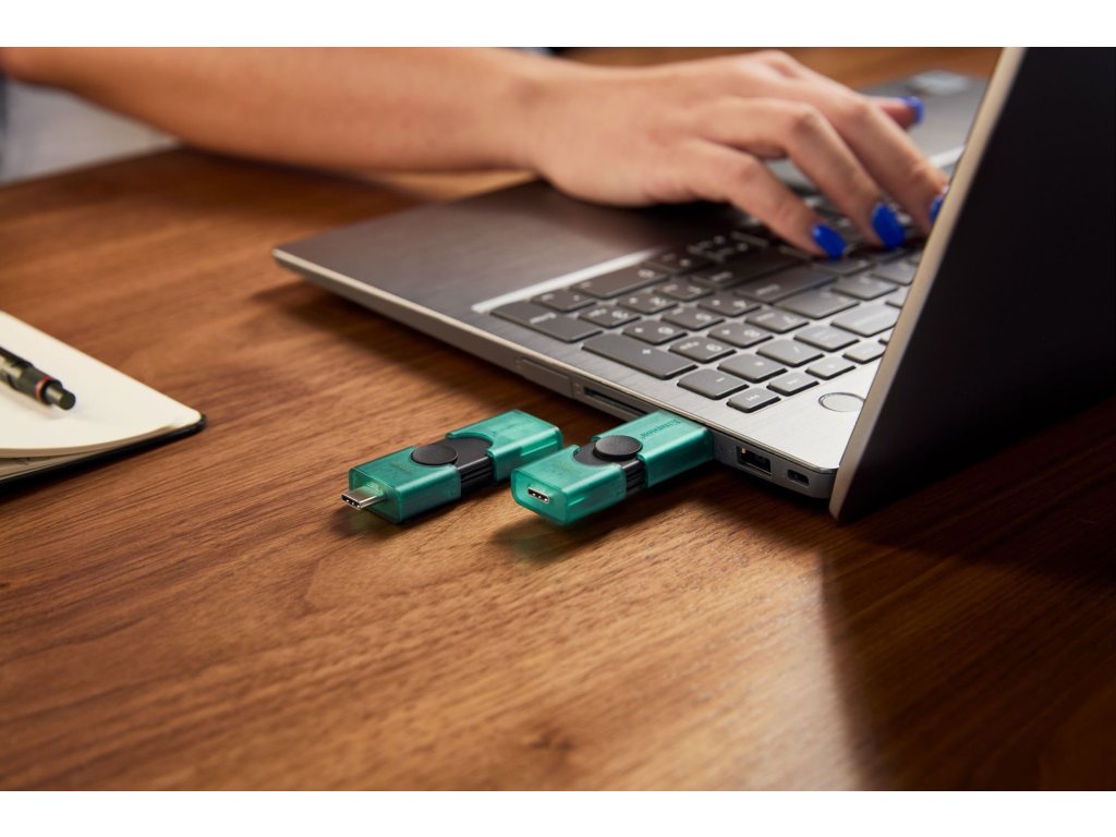 USB disk Kingston DataTraveler® Duo je vybaven dvěma USB konektory, které v zájmu maximální kompatibility fungují jak se standardním portem USB Type-A, tak s USB Type-C.