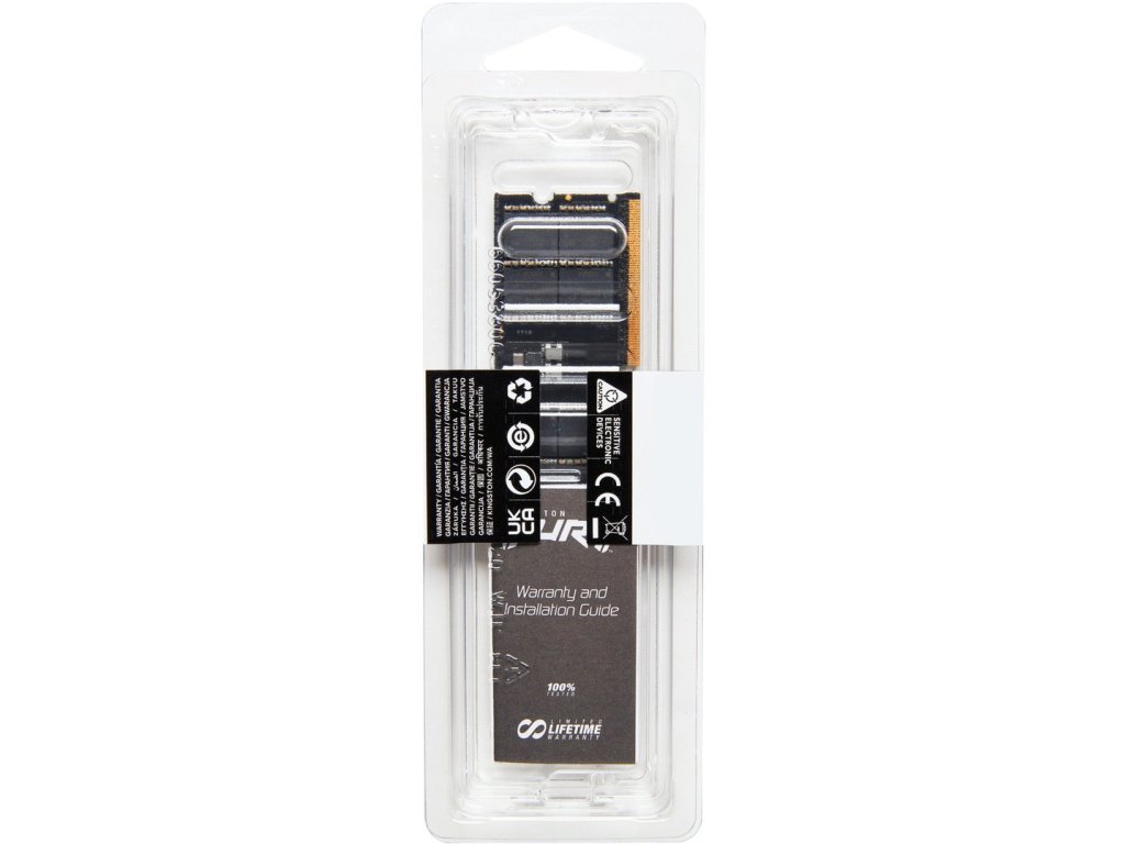 Operační paměť SODIMM DDR5, 16GB, frekvence 4800MHz, časování CL38, pasivní chladič v černém provedení.