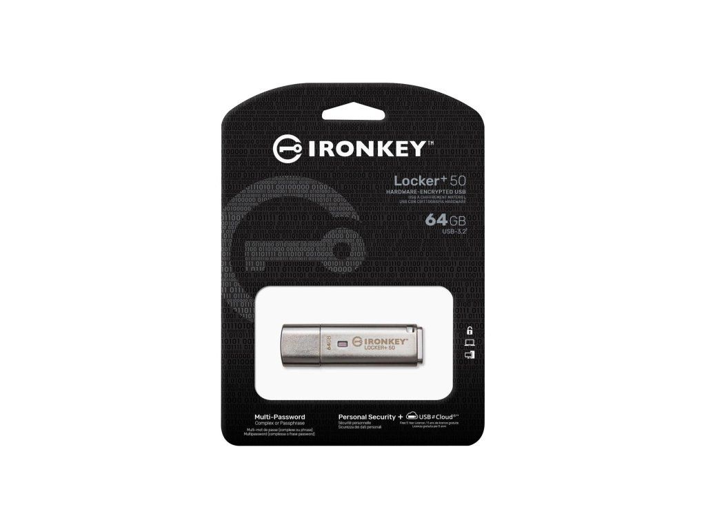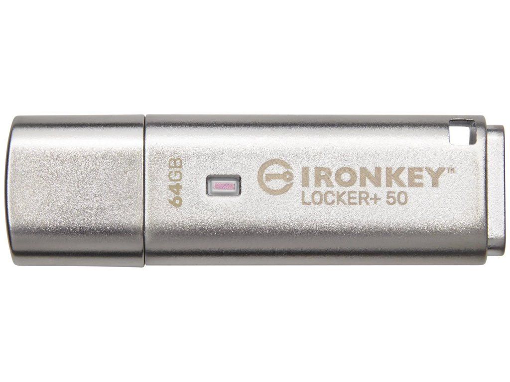 USB disk s kapacitou 64GB, flash memory, USB 3.1, šifrování XTS-AES, automatické zálohování do cloudu, odolné kovové provedení.