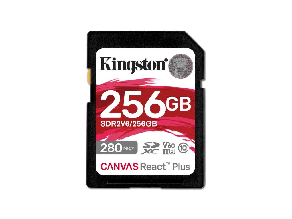 Kingston SDXC Karta Canvas React Plus SD karta Kingston Canvas React Plus V60 poskytuje působivý výkon pro kamery UHS-II pro zachycení 4K videa.