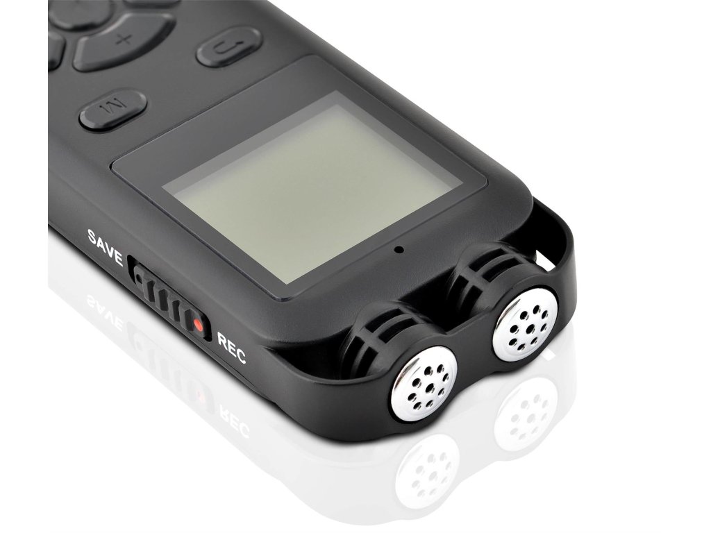 Diktafon, výdrž baterie až 20 h, záznam do WAV/MP3, hands-free hlasem aktivované nahrávání, interní paměť 8 GB (až 581 h záznamu), vestavěný reproduktor, 2x 3,5 mm jack