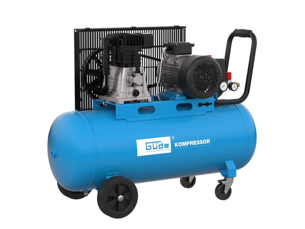 Výkonný kompresor, určený ke stlačování vzduchu za účelem jeho využití v domácích i servisních nebo řemeslnických dílnách.Plynulé zásobování vzduchových rozvodů v dílnách, opravnách aj. provozech • základní (běžné) činnosti se stlačeným vzduchem • práce s pneumatickým nářadím v krátkodobém i trvalém režimu (podle odběru vzduchu). Konstrukce: elektromotor 3,0 kW (2.840 ot.min-1, typ provozu: S1) • dvouválcový agregát s olejovým mazáním • pohon klínovým řemenem.Vybavení: 2 manometry, 2 výstupy stlačeného vzduchu, tlakový spínač, redukční ventil, pojistný přetlakový ventil, zpětný ventil, vzduchový filtr, dochlazovač, olejoznak, jistič motoru, ochranný (mřížový) kryt řemenu. Tlaková nádoba: 100 l, ventil pro vypouštění kondenzátu, pojezdová (vodicí) kola umožňující snadné přejíždění, transportní rukojeť. Celkové rozměry (d x š x v): 1.025 x 465 x 900 mm, hladina akustického výkonu LWA: 97 dB (A), třída ochrany: F, stupeň krytí: IP 20.