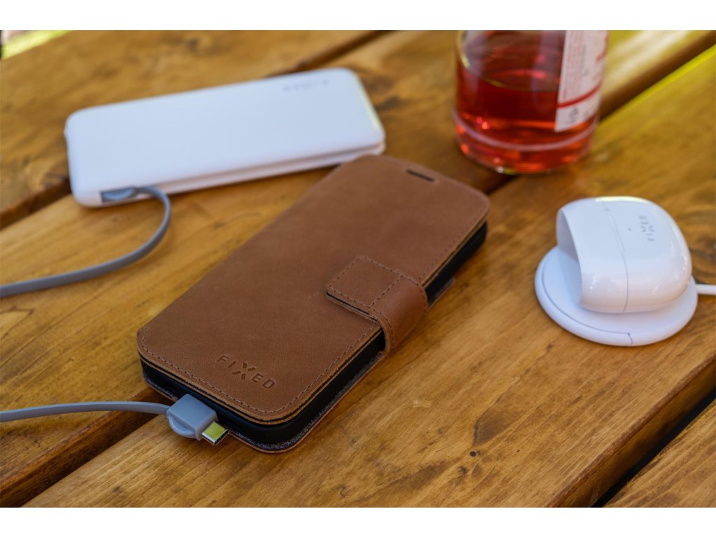 Ručně šité pouzdro z pravé hovězí kůže FIXED ProFit představuje elegantní a originální doplněk pro váš mobilní telefon. Ochrání ho před možným poškozením a zároveň poskytne dostatek místa pro doklady, kreditní kartu i pár bankovek. Pouzdro ProFit je pečlivě navrženo přesně na míru danému modelu telefonu, vnitřní silikonová vanička dokonale kopíruje tvar zařízení a ponechává volný přístup ke všem ovládacím tlačítkům, konektorům i fotoaparátu na zadní straně. Přední odklápěcí část bezpečně chrání displej a je jištěna zavíráním na magnet. Po otevření pouzdra najdete na vnitřní straně dvě kapsy pro kreditní karty a větší kapsu na bankovky.