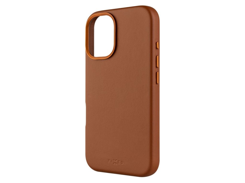 Kožený zadní kryt FIXED MagLeather s podporou MagSafe pro Apple iPhone 16, hnědý