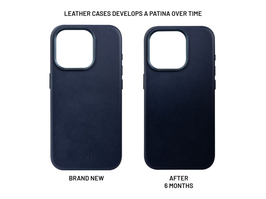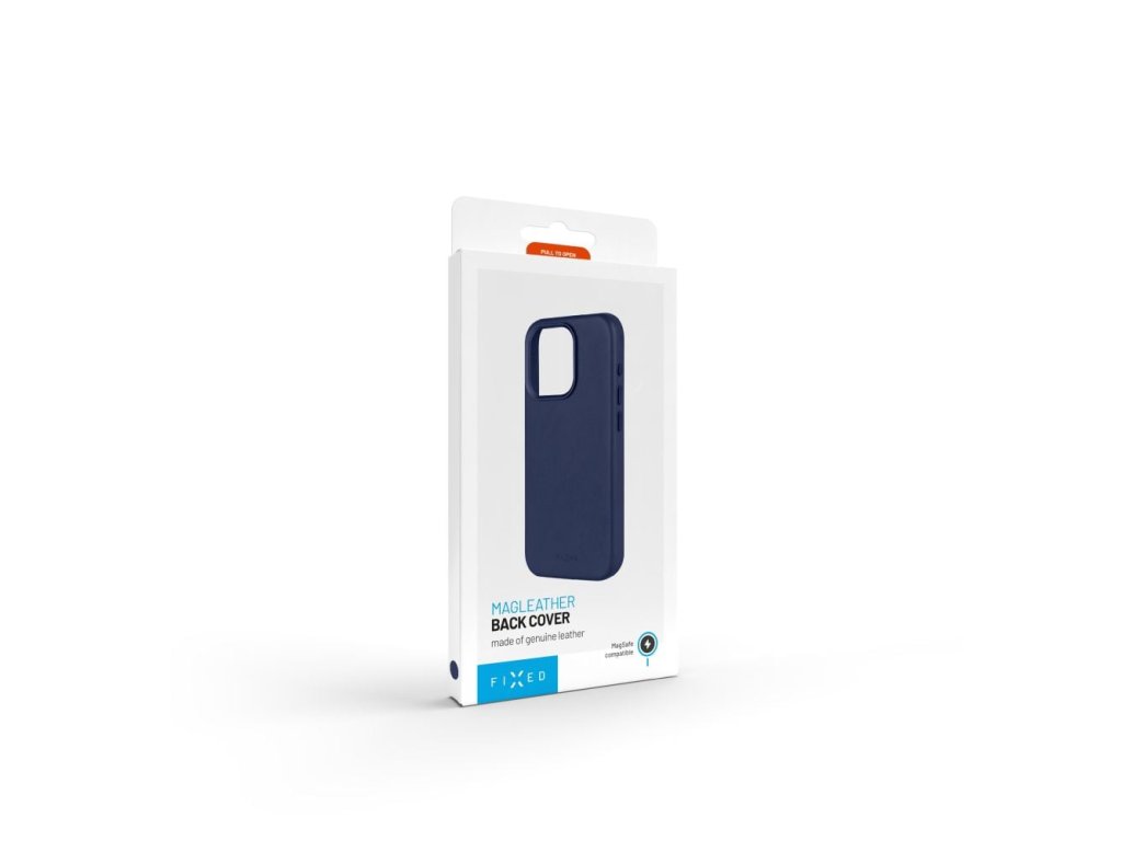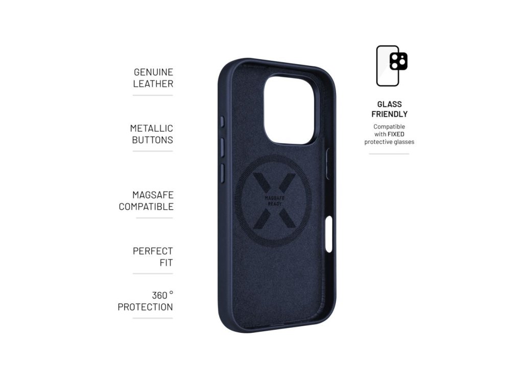 Kožený zadní kryt FIXED MagLeather s podporou MagSafe pro Apple iPhone 16 Pro, modrý
