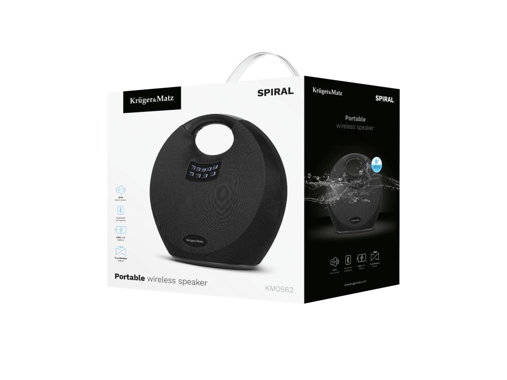 Kruger&Matz Spiral reproduktor je perfektní produkt pro lidi, kteří se rádi baví venku. Díky standardu IPX4, i když vás zastihne malý déšť během venkovní párty nebo táboráku, můžete volně hrát bez obav z poškození zařízení.