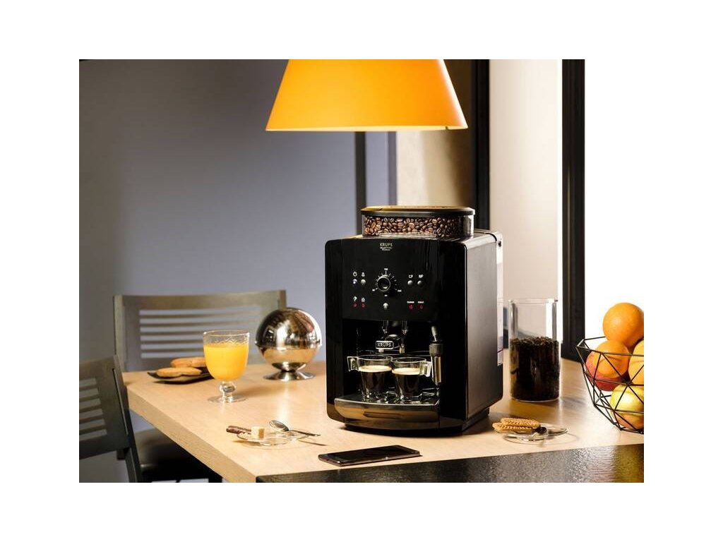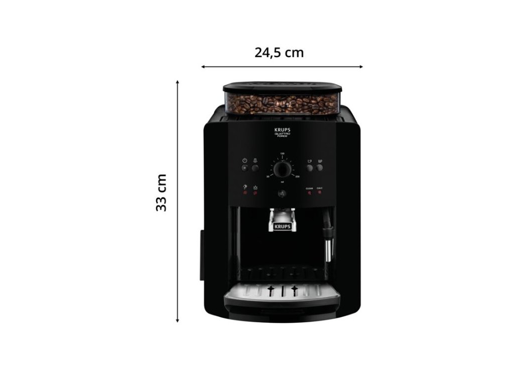Dopřejte si výbornou kávu jako od profesionála přímo z kvalitního espressa Krups Arabica EA811010 v elegantním provedení. Se svým kompaktním rozměrem 36,5 × 24,5 × 33 cm se perfektně hodí do každé kuchyně. Během chvíle vám připraví ryzí a na chuť bohatou kávu a espresso v bezkonkurenční kvalitě. Automatický přístroj vybavený výkonným čerpadlem s tlakem 15 barů disponuje maximálním příkonem 1 450 W. Odnímatelná nádržka na vodu pojme až 1,7 l.