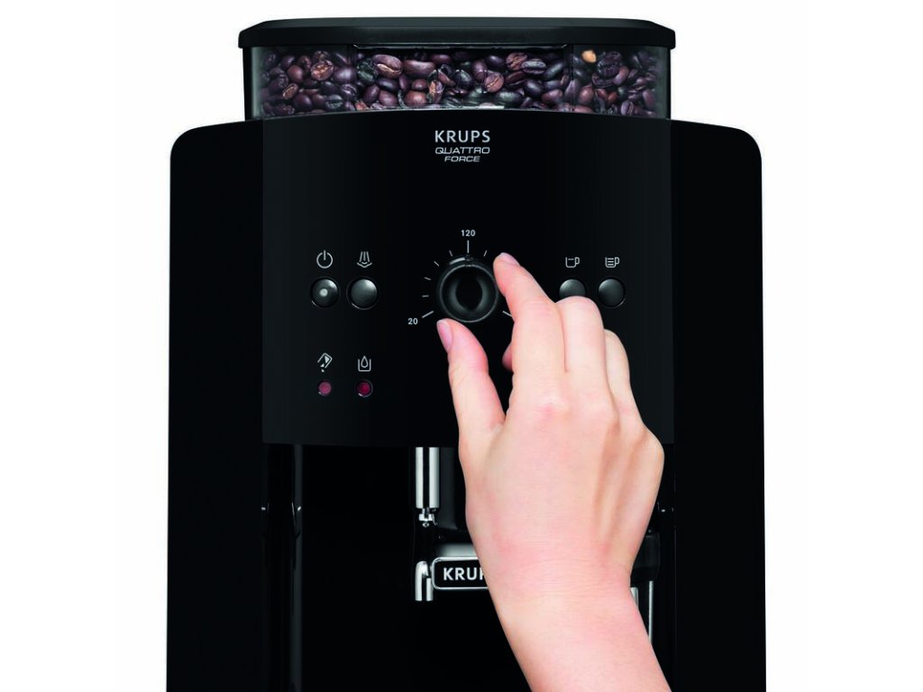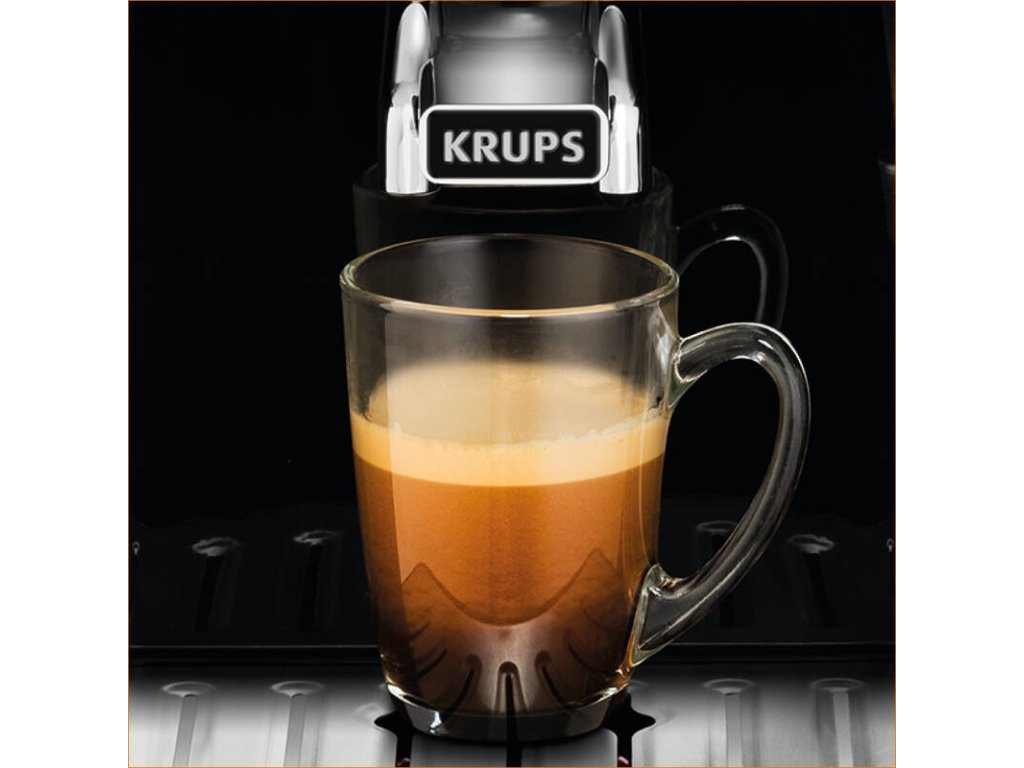 Automatický kávovar Krups, vybavený zásobníkem na kávová zrna o kapacitě 260 g, zvládne připravit dvě espressa současně. Parametry ideálního šálku navolíte pomocí intuitivního ovládacího panelu. Na kovovém kónickém mlýnku je možné nastavit 3 stupně hrubosti mletí. Pomocí jejich kombinace se třemi nastaveními teploty je možné si nápoj přizpůsobit podle chuti. Tento individuální recept lze uložit pomocí praktického paměťového režimu, abyste parametry nemuseli znovu zadávat. Výpust kávy je možné výškově nastavit a připravit si tak nápoj do svého oblíbeného hrnku.