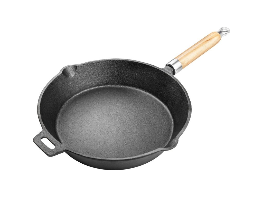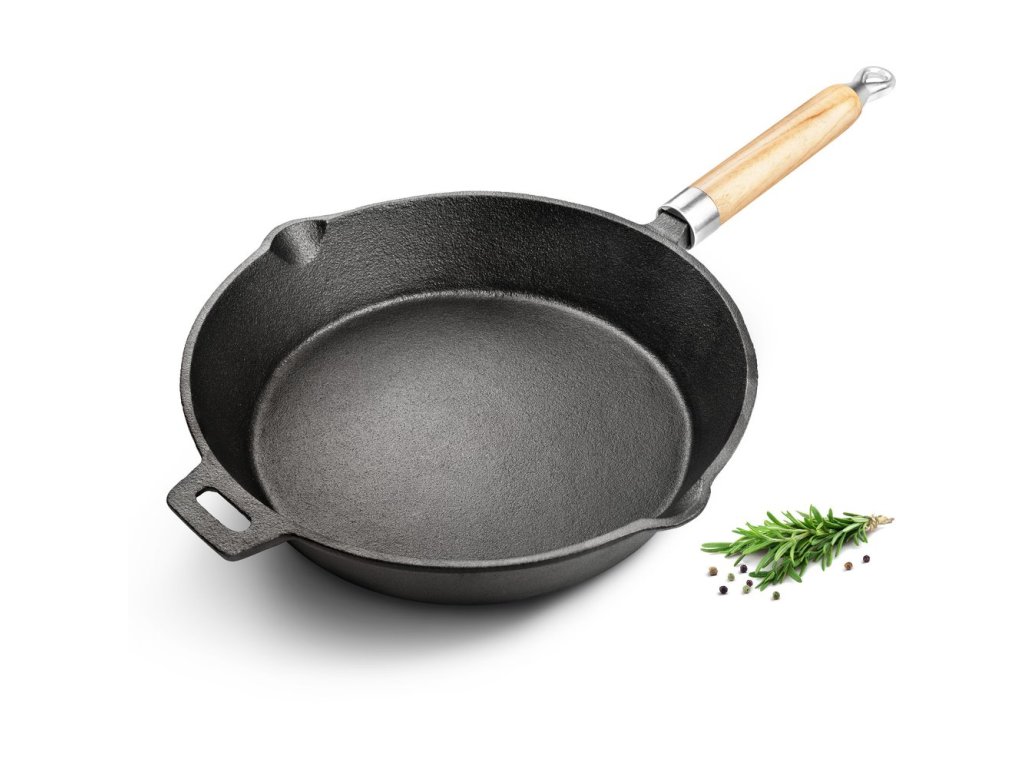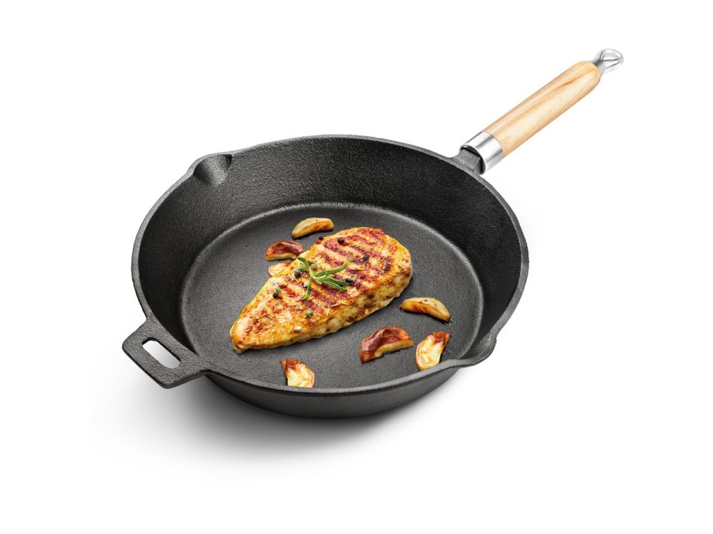 Pánev z litiny průměru 25 cm vám pomůže při přípravě chutných pokrmů z masa, zeleniny i brambor. Po postupném zahřátí snese i vysoké teploty, maso se i na menším množství tuku rychle zatáhne a šťáva tak zůstane pěkně uvnitř.