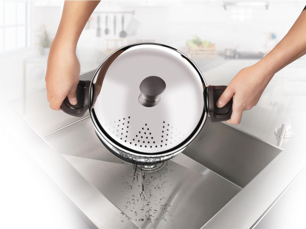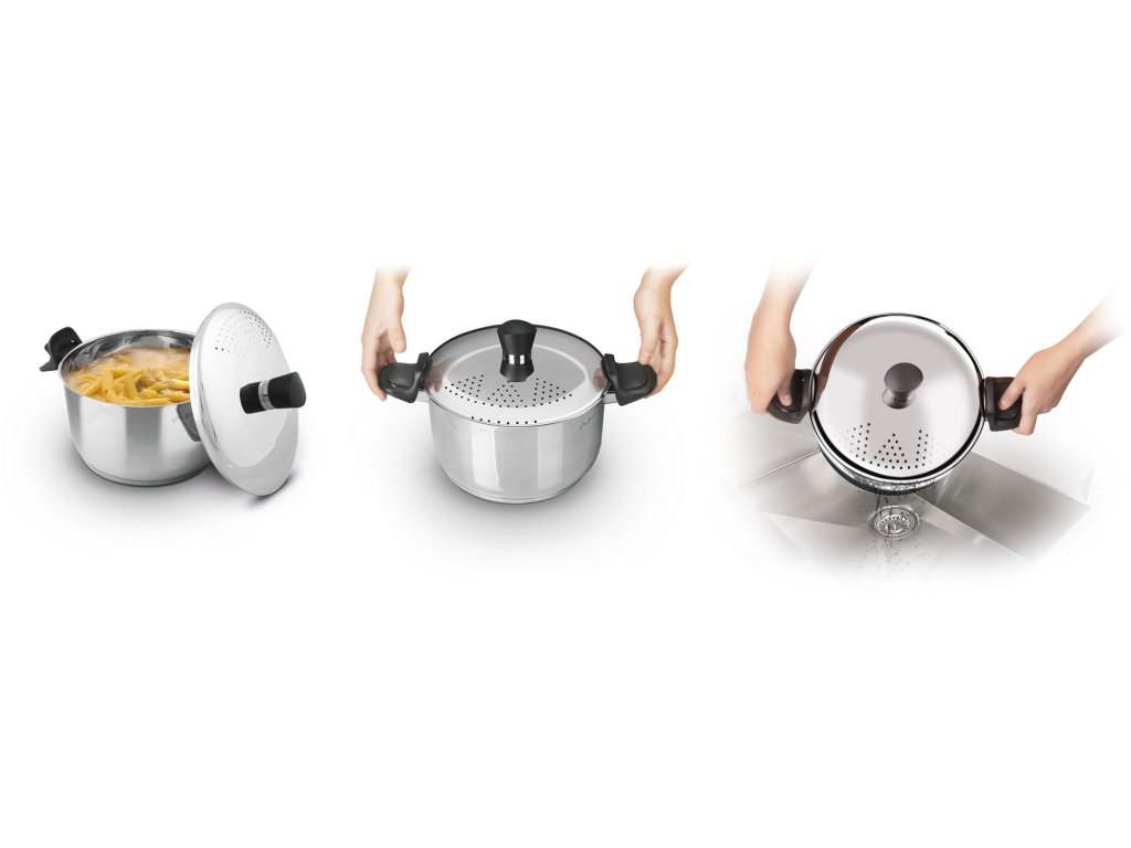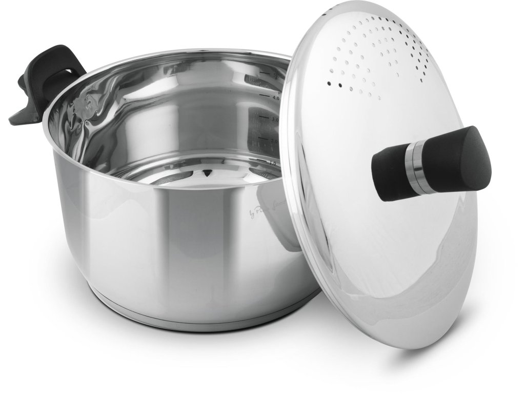Základem každého vaření je kvalitní hrnec. Masivní hrnec STRAIN s cedicí poklicí z kvalitní nerezové oceli s termoakumulačním dnem zajistí úsporné, ekonomické a efektivní vaření.