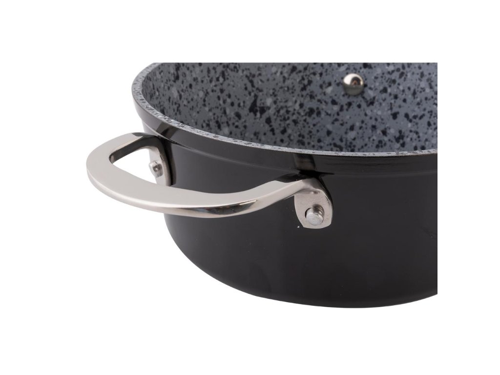 Pánev opatřena vnitřním povrchem odolným proti oděru a připalování, silným dnem a velmi elegantní soft rukojetí.