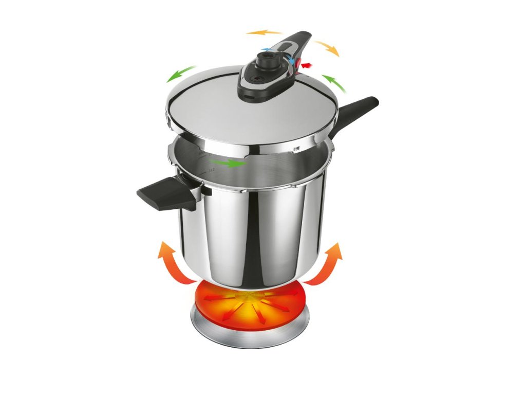 Čtyři pojistky, indikátor tlaku a dvojí bezpečnostní ventil zajišťují maximální bezpečnost při vaření.