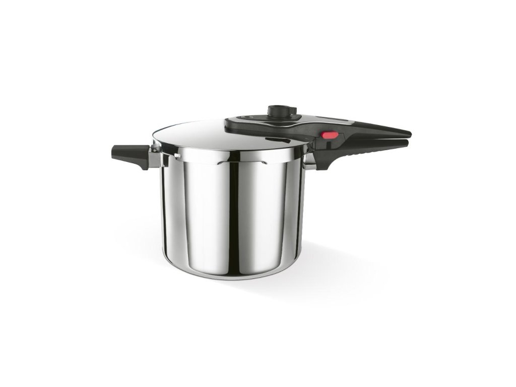 Tento tlakový hrnec je vyroben z vysoce kvalitní nerezavějící oceli 18/10 a velmi odolného plastu.