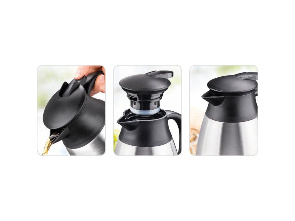 Nerezová termoska Table značky Lamart o objemu 1,5 litru v elegantním designu. Ranní káva nebo lahodný čaj vydrží o něco déle teplé. Termoska je vyrobena z vysoce kvalitní nerezavějící oceli se šroubovacím mechanismem otevření z kvalitního plastu.