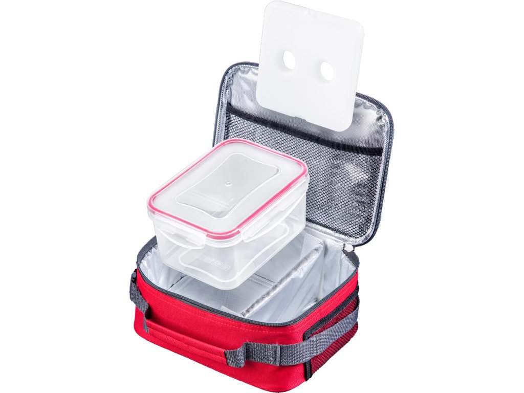 Rozměr: termobrašna - 23x18x10 cm, dóza – 18,5x13x8,5 cm, chladící vložka – 12x12x1,2 cm