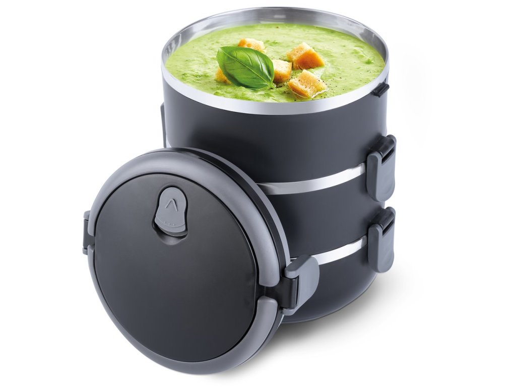 Termojídlonosič je praktický pomocník pro uchovávání a přenášení horkých i studených pokrmů. Vyroben z kvalitního odolného plastu a vnitřní nerezové vložky. Víčko jídlonosiče má silikonové těsnění a je vzduchotěsné i vodotěsné. Dóza s víčkem je vhodná také pro ukládání potravin do ledničky. Víčko je doplněno madlem a aroma ventilem.