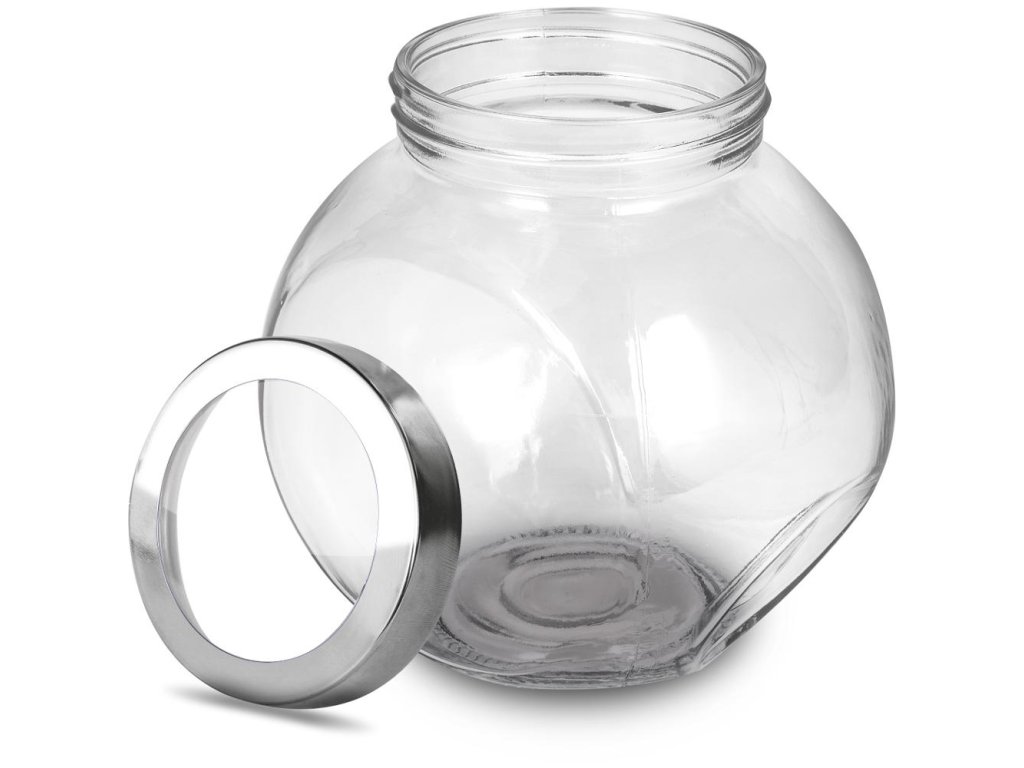 sada skleněných dóz • objem 1,5 l • vyrobena z odolného skla s kvalitním šroubovacím nerezovým víčkem • v balení 2 ks • průměr 8,3 cm • rozměry: 16 x 12 x 16,5 cm