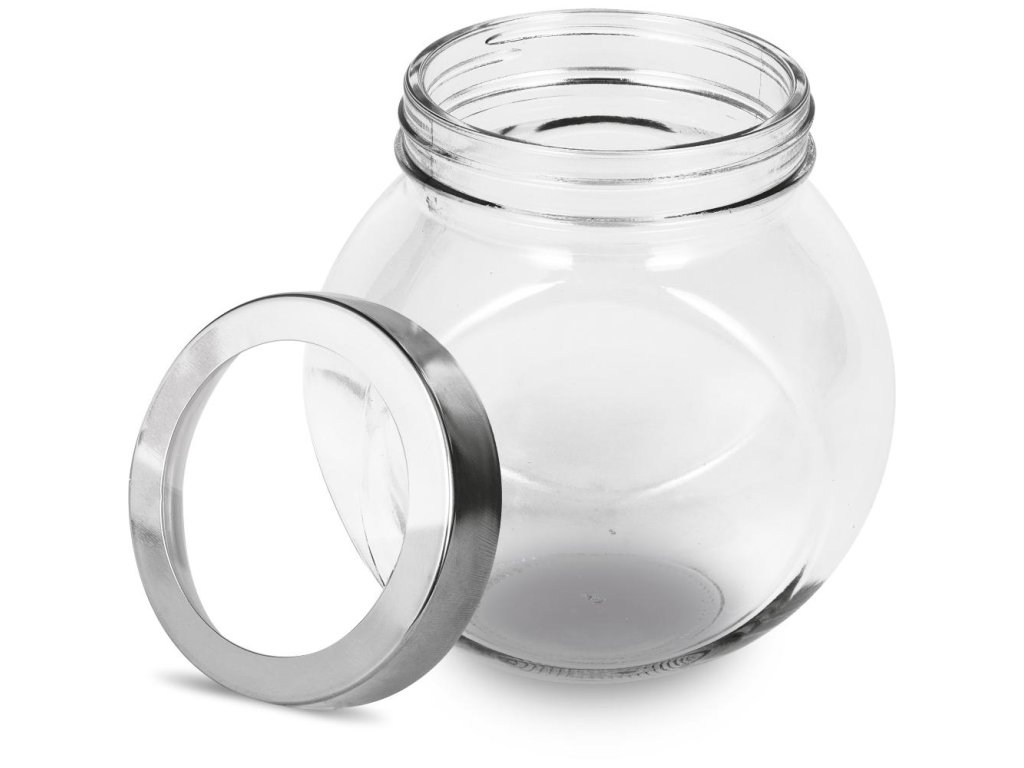 sada skleněných dóz • objem 650 ml • vyrobena z odolného skla s kvalitním šroubovacím nerezovým víčkem • v balení 3 ks • rozměry: 12 x 9 x 13 cm