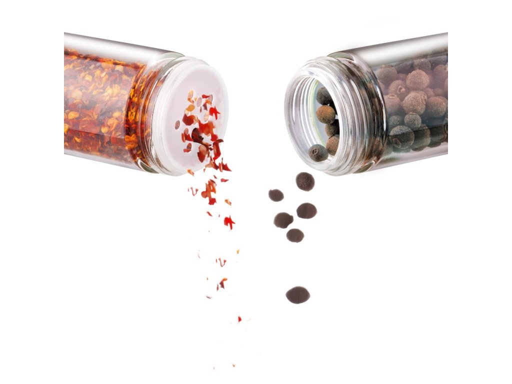 Absolutní nutností při vaření a pečení je perfektní dochucení. Designovým a zároveň praktickým pomocníkem je otočný stojan z nerezové oceli s 8 kořenkami objemu 85 ml. Usnadní vám hledání koření a urychlí tak přípravu pokrmů.