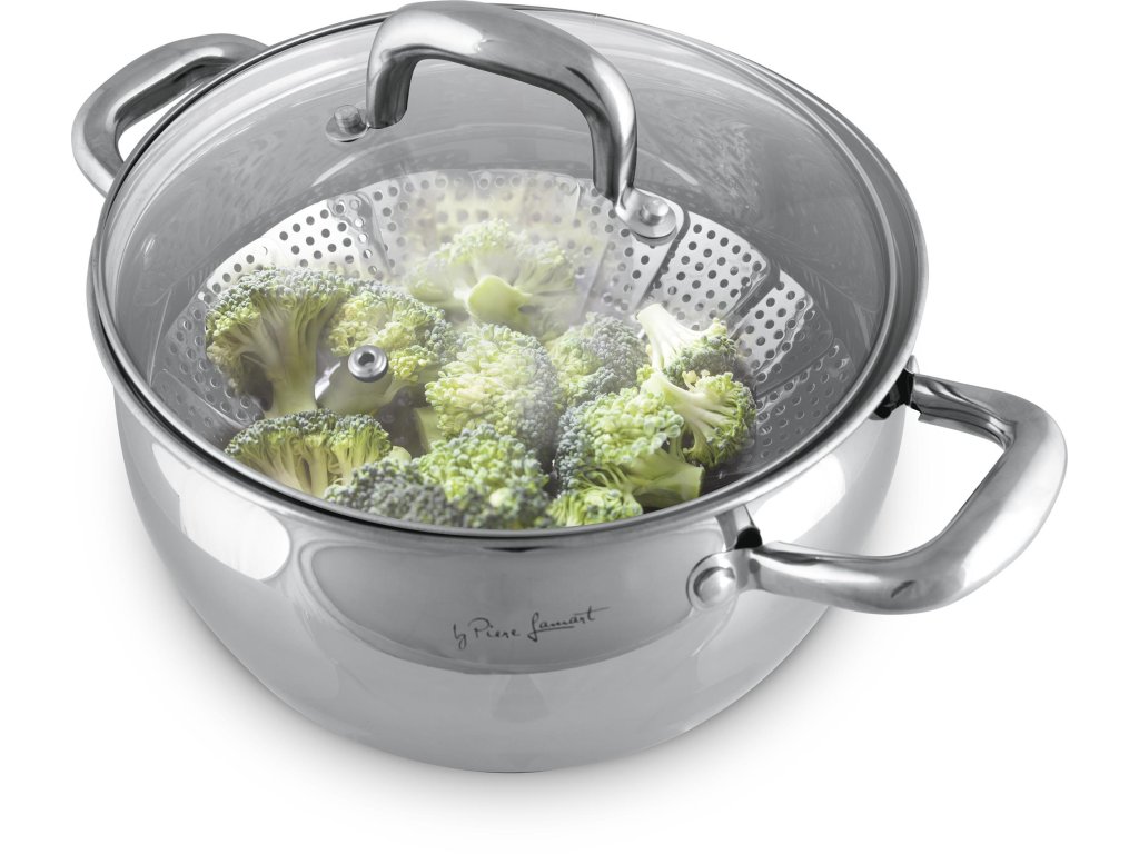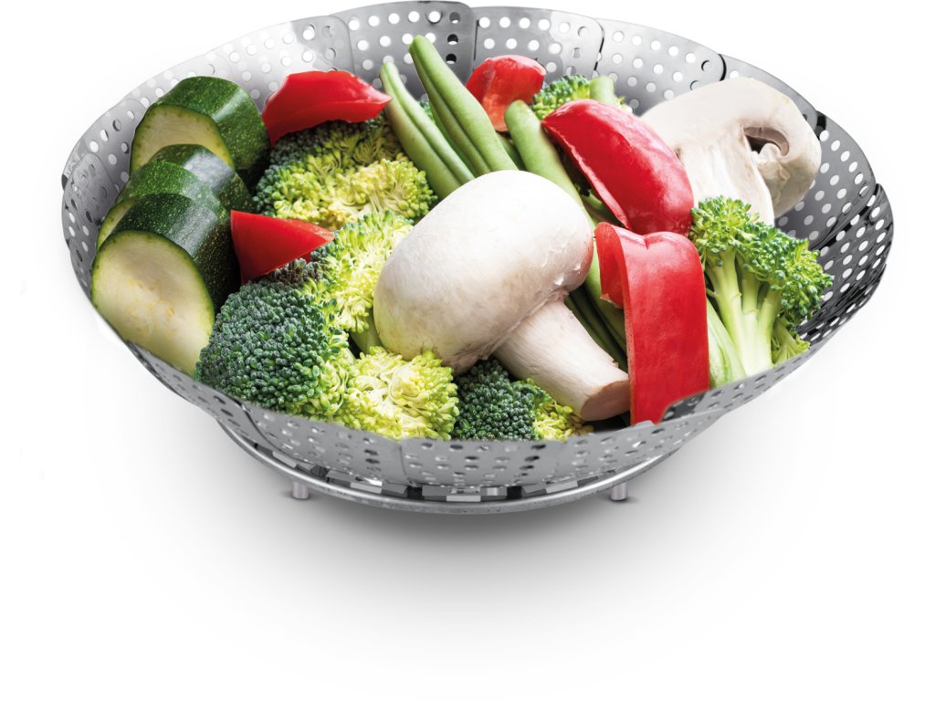 Pařáček skládací, nerezový je vhodný k napařování knedlíků, vaření zeleniny a jiných pokrmů v páře - zachovává minerály a vitamíny. Lze použít do hrnců různých průměrů.